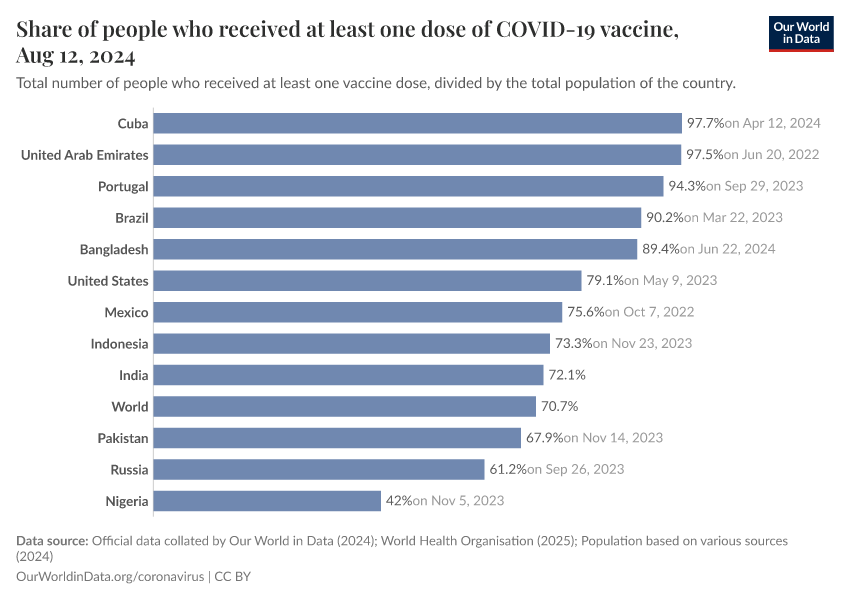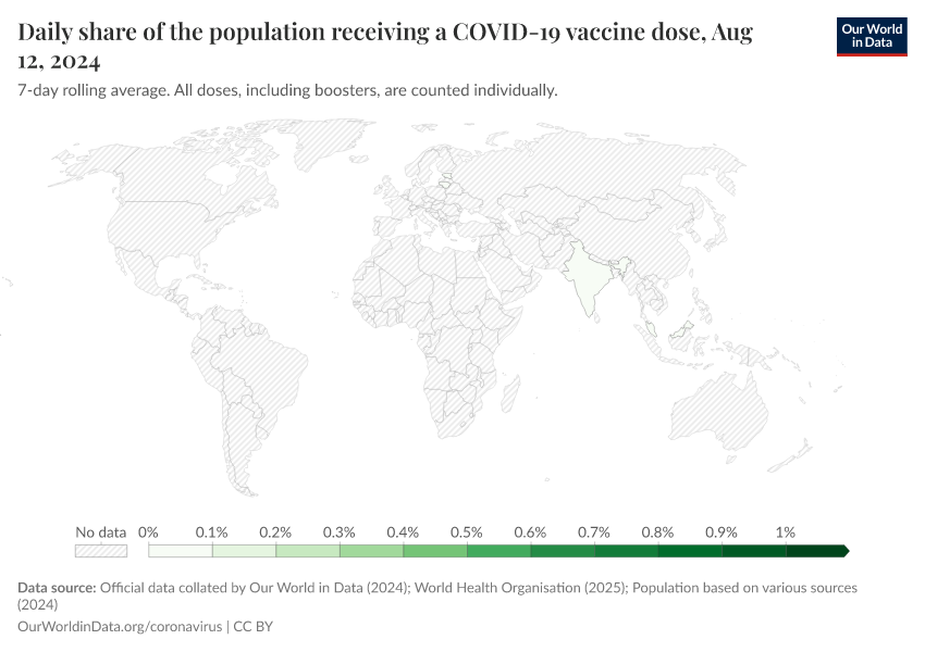 Edouard Mathieu, Hannah Ritchie, Lucas Rodés-Guirao, Cameron Appel, Daniel Gavrilov, Charlie Giattino, Joe Hasell, Bobbie Macdonald, Saloni Dattani, Diana Beltekian, Esteban Ortiz-Ospina, and Max Roser (2020) - “Coronavirus (COVID-19) Vaccinations” Published online at OurWorldinData.org. Retrieved from: 'https://owid-bot-svg-tester-thumbnai.owid.pages.dev/covid-vaccinations' [Online Resource]BibTeX citation