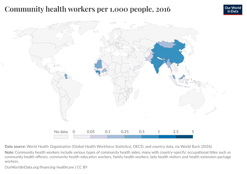 “Data Page: Community health workers per 1,000 people”. Our World in Data (2026). Data adapted from World Health Organization (Global Health Workforce Statistics), OECD, and country data, via World Bank. Retrieved from https://owid-bot-svg-tester-thumbnai.owid.pages.dev/grapher/community-health-workers [online resource]How to cite this data