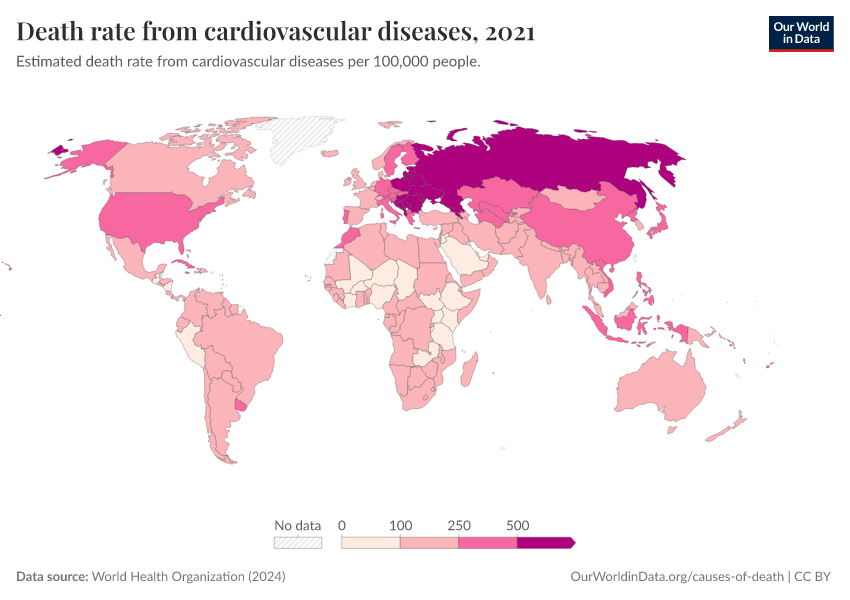 World Health Organization (2024) – with major processing by Our World in Data. “Death rate from cardiovascular diseases” [dataset]. World Health Organization, “Global Health Estimates” [original data]. Retrieved January 16, 2026 from https://owid-bot-svg-tester-thumbnai.owid.pages.dev/grapher/death-rate-from-cardiovascular-disease-ghe