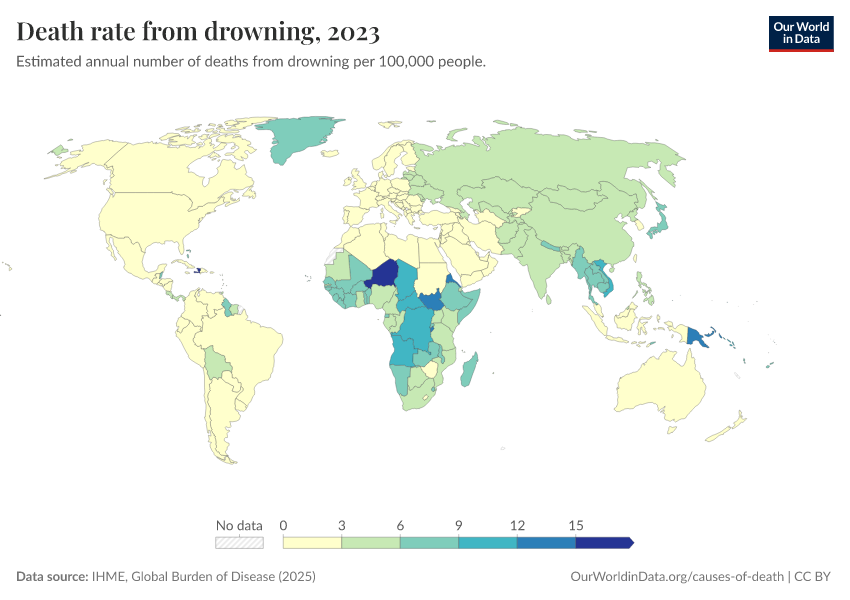 “Data Page: Death rate from drowning”, part of the following publication: Esteban Ortiz-Ospina and Max Roser (2016) - “Global Health”. Data adapted from IHME, Global Burden of Disease. Retrieved from https://owid-bot-svg-tester-thumbnai.owid.pages.dev/grapher/death-rate-from-drowning [online resource]How to cite this data