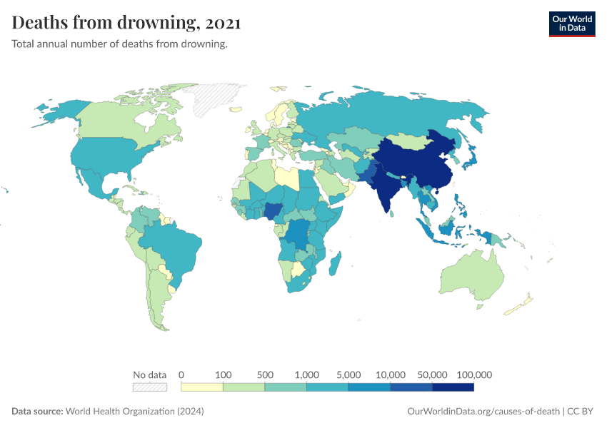 “Data Page: Deaths from drowning”, part of the following publication: Esteban Ortiz-Ospina and Max Roser (2016) - “Global Health”. Data adapted from World Health Organization. Retrieved from https://owid-bot-svg-tester-thumbnai.owid.pages.dev/grapher/deaths-from-drowning-ghe [online resource]How to cite this data