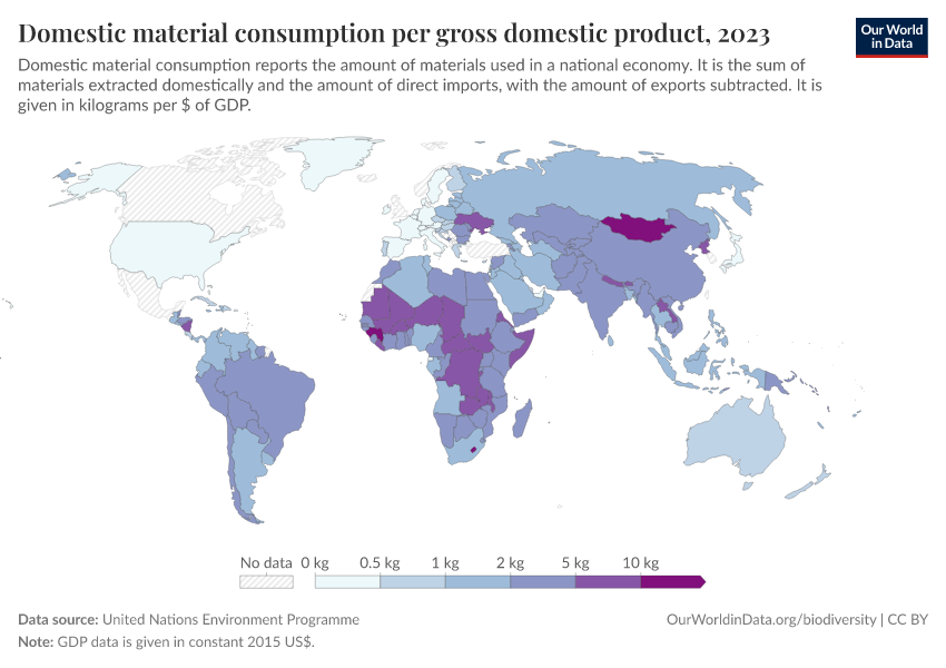 United Nations Environment Programme – processed by Our World in Data. “Domestic material consumption per gross domestic product” [dataset]. United Nations Environment Programme, “WESR / Global Material Flows Database” [original data]. Retrieved January 16, 2026 from https://owid-bot-svg-tester-thumbnai.owid.pages.dev/grapher/domestic-material-consumption-per-unit-of-gdp