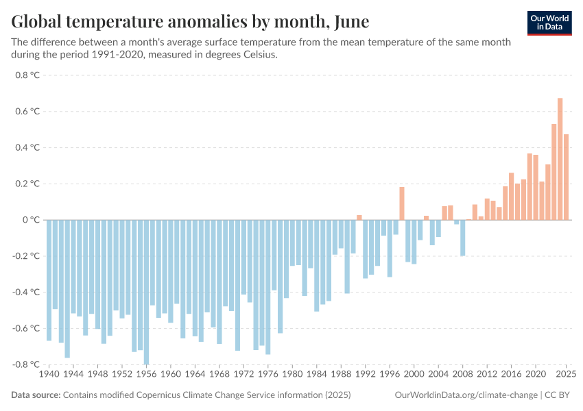 Contains modified Copernicus Climate Change Service information (2025) – with major processing by Our World in Data. “Global temperature anomalies by month” [dataset]. Contains modified Copernicus Climate Change Service information, “ERA5 monthly averaged data on single levels from 1940 to present 2” [original data]. Retrieved January 16, 2026 from https://owid-bot-svg-tester-thumbnai.owid.pages.dev/grapher/global-temperature-anomalies-by-month