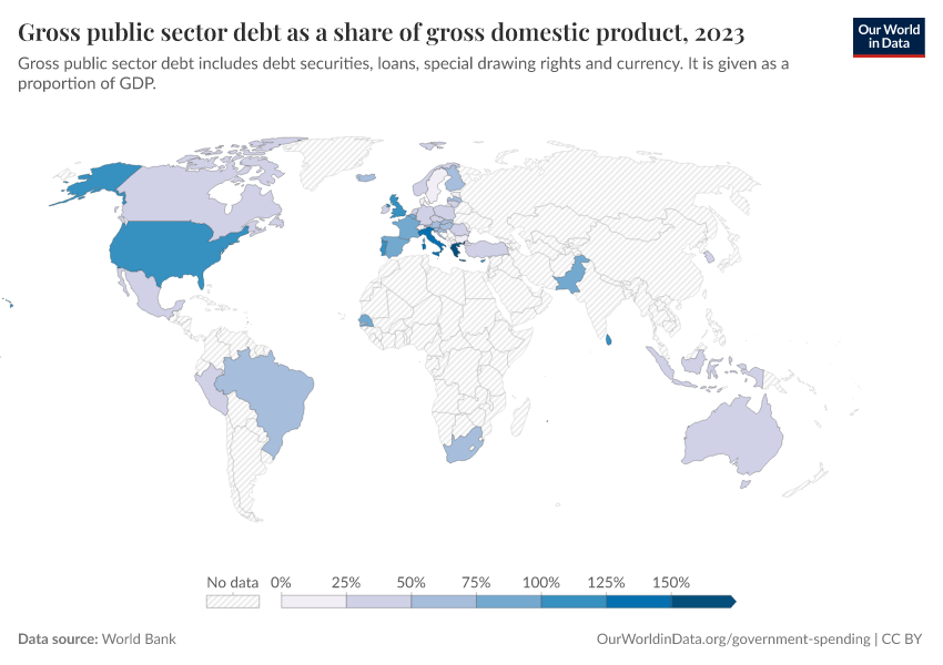 “Data Page: Gross public sector debt as a share of gross domestic product”. Our World in Data (2026). Data adapted from World Bank. Retrieved from https://owid-bot-svg-tester-thumbnai.owid.pages.dev/grapher/gross-public-sector-debt-as-a-proportion-of-gdp [online resource]How to cite this data