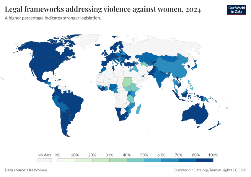 UN Women – processed by Our World in Data. “Legal frameworks addressing violence against women” [dataset]. UN Women, “UN Women” [original data]. Retrieved January 16, 2026 from https://owid-bot-svg-tester-thumbnai.owid.pages.dev/grapher/legal-frameworks-regarding-violence-against-women