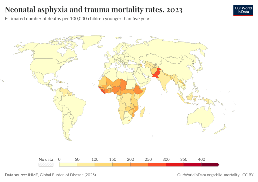 IHME, Global Burden of Disease (2024) – with minor processing by Our World in Data. “Neonatal asphyxia and trauma mortality rates” [dataset]. IHME, Global Burden of Disease, “Global Burden of Disease - Deaths and DALYs” [original data]. Retrieved January 16, 2026 from https://owid-bot-svg-tester-thumbnai.owid.pages.dev/grapher/mortality-neonatal-asphyxia-and-trauma