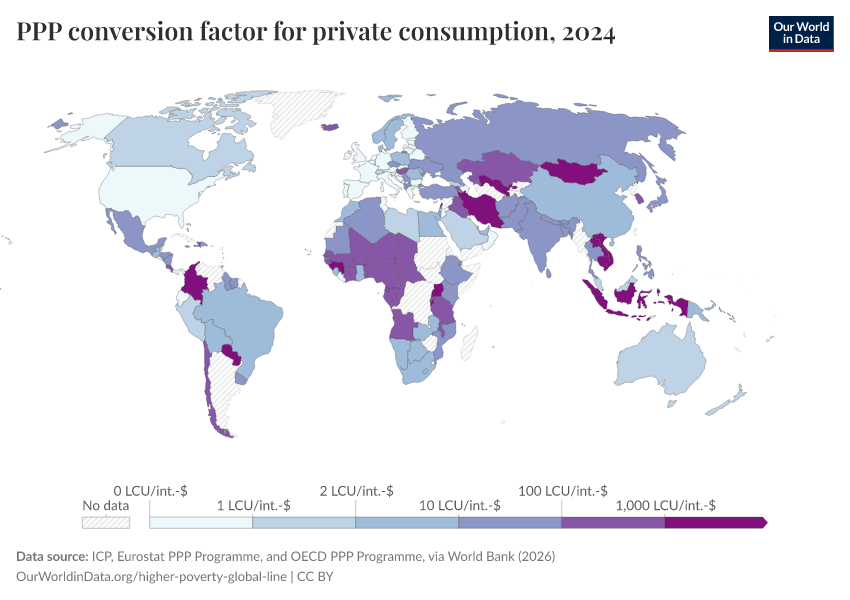 “Data Page: PPP conversion factor for private consumption”. Our World in Data (2026). Data adapted from ICP, Eurostat PPP Programme, and OECD PPP Programme, via World Bank. Retrieved from https://owid-bot-svg-tester-thumbnai.owid.pages.dev/grapher/ppp-conversion-factor-for-private-consumption [online resource]How to cite this data