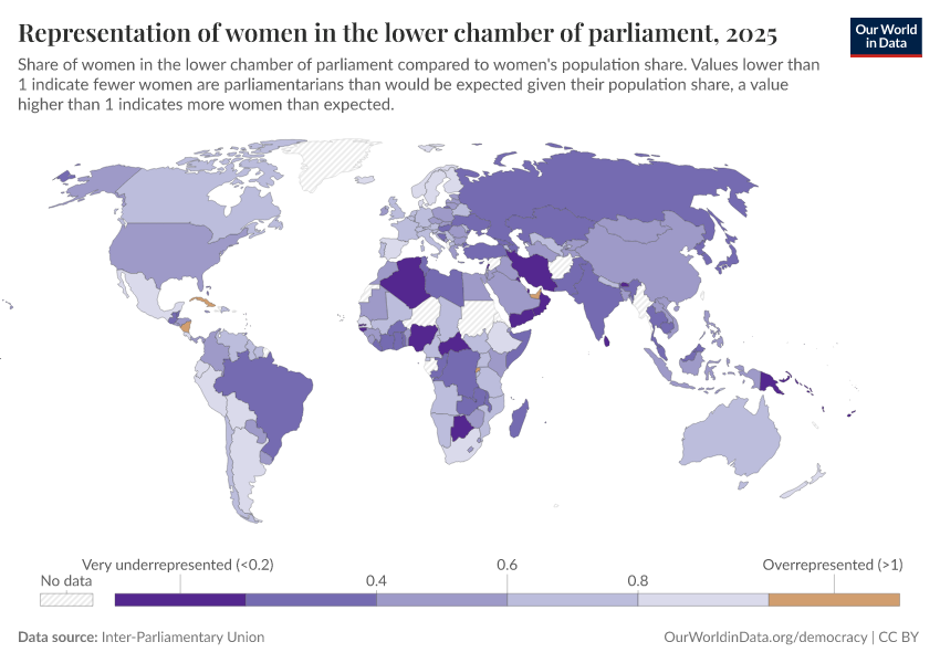 “Data Page: Representation of women in the lower chamber of parliament”. Our World in Data (2026). Data adapted from Inter-Parliamentary Union. Retrieved from https://owid-bot-svg-tester-thumbnai.owid.pages.dev/grapher/representation-of-women-in-lower-chamber-of-parliament [online resource]How to cite this data