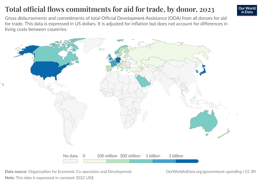 “Data Page: Total official flows commitments for aid for trade, by donor”. Our World in Data (2026). Data adapted from Organisation for Economic Co-operation and Development. Retrieved from https://owid-bot-svg-tester-thumbnai.owid.pages.dev/grapher/total-oda-for-aid-for-trade-by-donor [online resource]How to cite this data