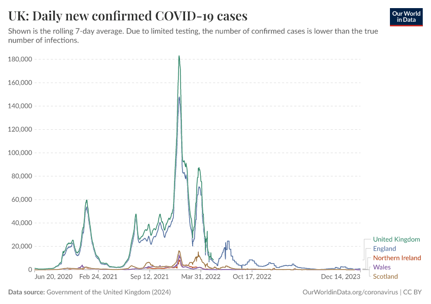 Government of the United Kingdom (2024) – with minor processing by Our World in Data. “UK: Daily new confirmed COVID-19 cases” [dataset]. Government of the United Kingdom, “UKHSA data dashboard” [original data]. Retrieved January 16, 2026 from https://owid-bot-svg-tester-thumbnai.owid.pages.dev/grapher/uk-daily-new-covid-cases