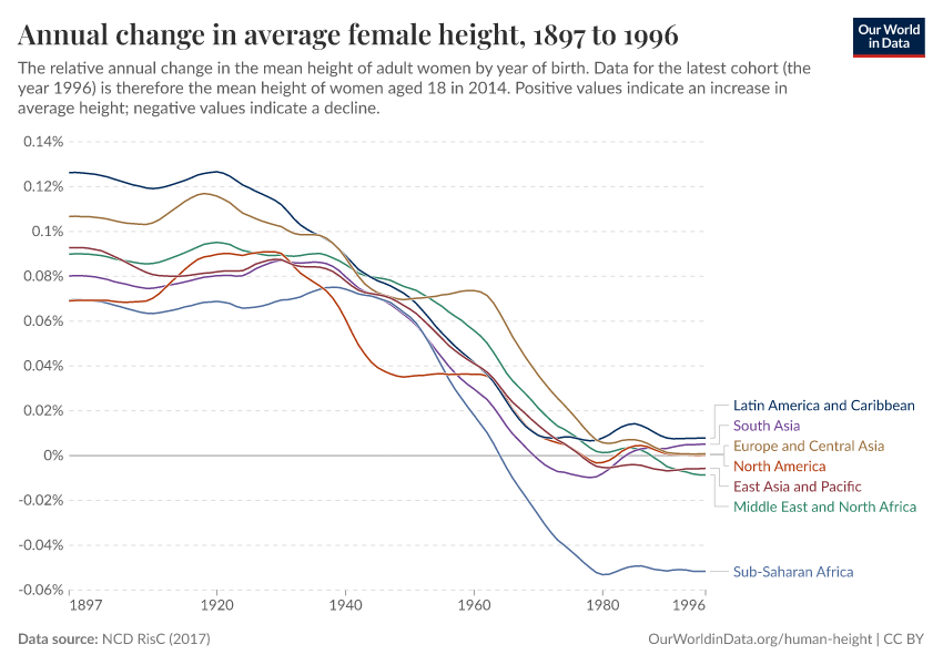 There are significant regional variations in change in average human heights.