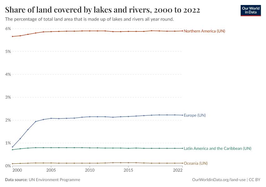 Data for this indicator on lakes and rivers (first chart), wetlands (second chart), and mangrove area (third chart) are shown in the interactive visualizations.