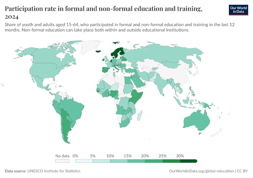 Data for this indicator is shown in the interactive visualization. We also show the enrollment in tertiary education.