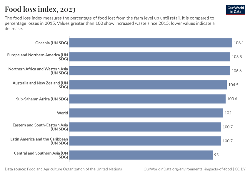 The ‘Food Loss Index’ measures how losses in the food supply chain have changed relative to 2015.