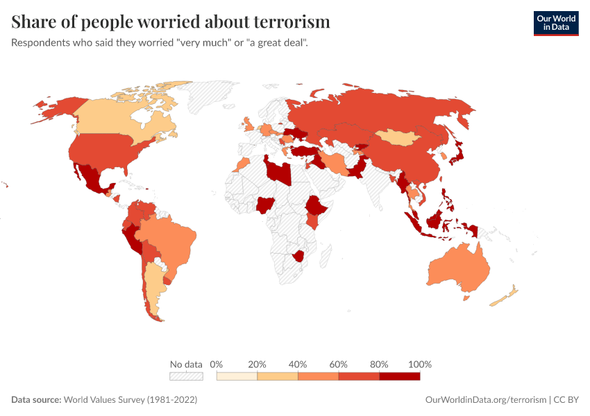 Terrorism is also a big concern for people across the world. Attacks are rare, but often shocking, as they are meant to scare and subdue.