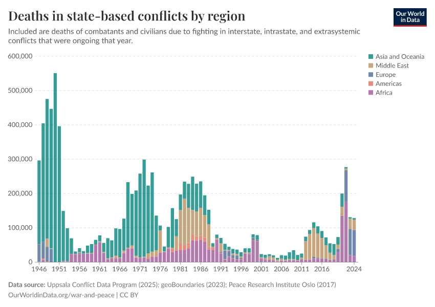 Bastian Herre, Lucas Rodés-Guirao, and Max Roser (2024) - “War and Peace” Published online at OurWorldinData.org. Retrieved from: 'https://owid-bot-svg-tester-thumbnai.owid.pages.dev/war-and-peace' [Online Resource]BibTeX citation